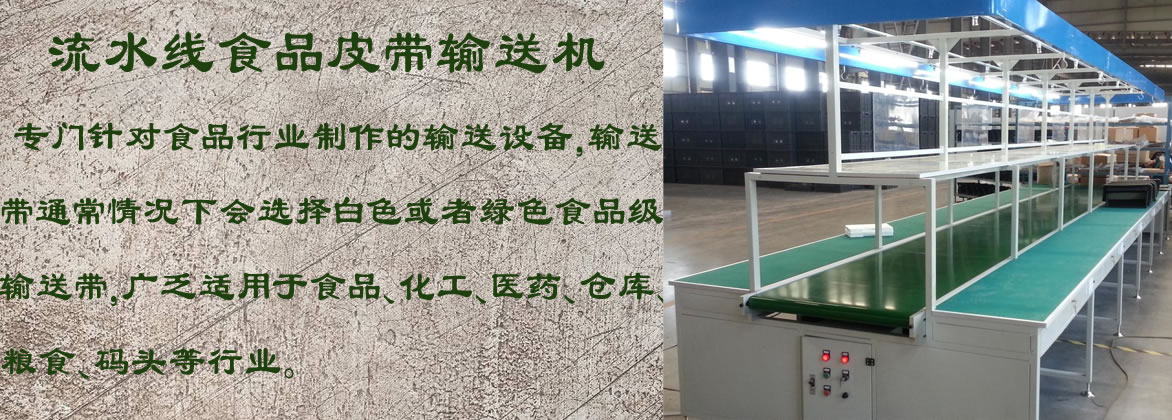 食品皮帶輸送機由驅動裝置拉緊輸送帶,中部構架和托輥組成輸送帶作為牽引和承載構件,借以連續(xù)輸送散碎食品或成件食品。該設備是組成有節(jié)奏的流水作業(yè)線所不可缺少的經(jīng)濟型食品輸送設備,具有輸送能力強,輸送距離遠,結構簡單易于維護,能方便地實行程序化控制和自動化操作。