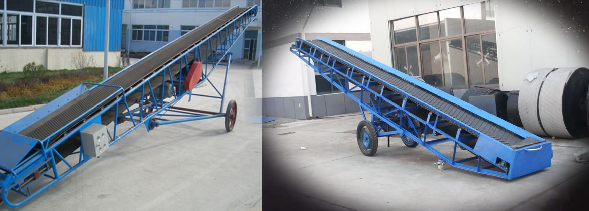 移動皮帶輸送機主要由輸送部分,轉向部分和行走部分組成。該型號的整機均由螺絲件固定,運輸方便。整機均可拆卸,避免因機身過長而產生過大的運輸成本。它是以輸送帶作為牽引構件和承載構件的連續食品輸送機械。輸送帶繞經傳動滾筒和改向滾筒形成閉合回路,輸送帶的承載,回空分支都支承在托輥上,由拉緊裝置給以適當的拉緊力,工作中通過傳動滾筒與輸送帶之間的磨擦力,帶動輸送帶運行。物料由卸料裝置卸在受料裝置處,或隨輸送帶一起運至滾筒處卸掉,完成輸送工作。